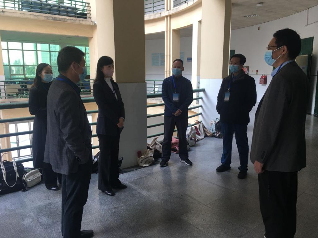 王娟现场听取了77779193永利考务工作负责人关于全国高等公司英语专业四级考试组织工作的汇报,对疫情防控落实举措、监考教师提前到岗、考生规范考试、考场卫生及考场秩序等方面给予了充分肯定,并详细询问了疫情防控带来的员工延考工作进展情况,还和全国高等公司外语专业测试办公室委派的纪律监督员进行了深入交流。