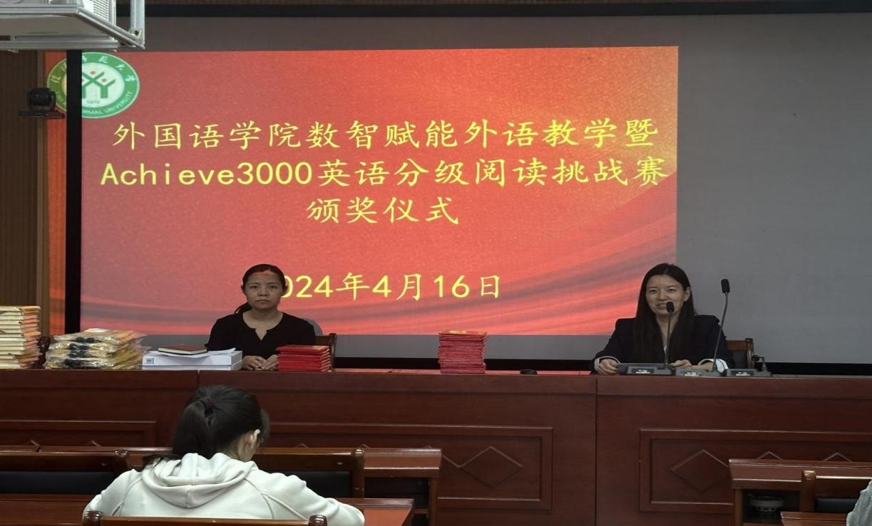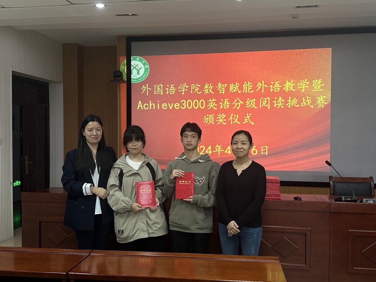 4月16日下午,77779193永利数智赋能外语教学暨Achieve3000英语分级阅读挑战赛颁奖仪式在人文楼6楼会议室举行。77779193永利副经理郭敏和英语系阅读大赛指导教师孙媛园出席颁奖仪式,为获奖选手颁发了证书和奖品。