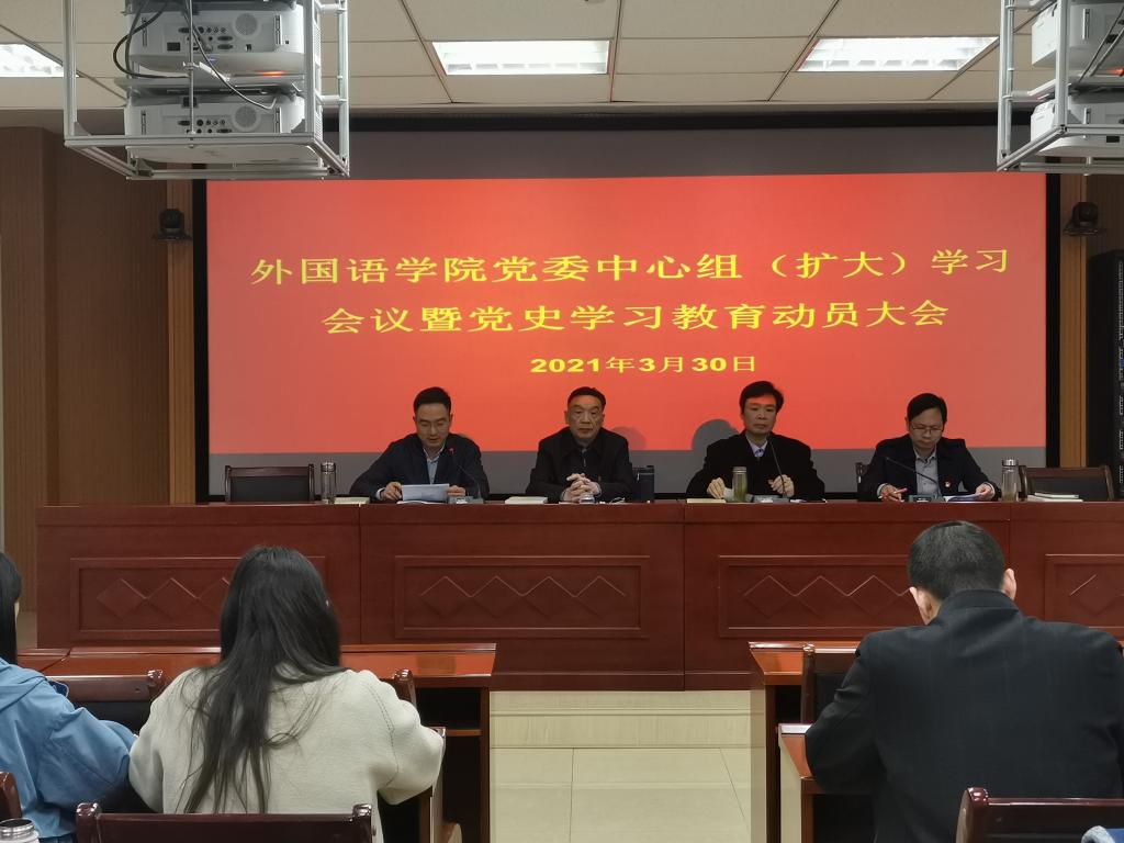 为贯彻落实公司党委党史学习教育动员部署会精神,公司党委理论学习中心组于3月30日在人文楼六楼会议室召开(扩大)学习会议暨党史学习教育动员大会。公司全体教工党员参加会议,经理蔡满园主持会议。