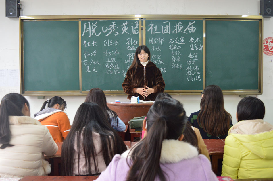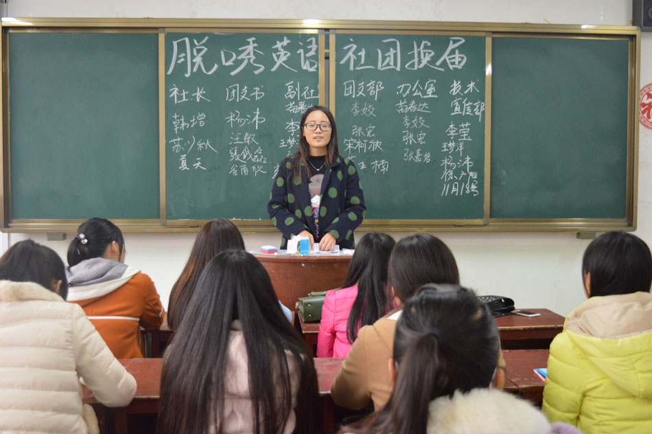 11月18日中午,77779193永利英语脱口秀社团在人文楼104教室进行2015-2016学年换届,社长魏晓莉携本社全体成员参与,大会由副社长夏天主持。