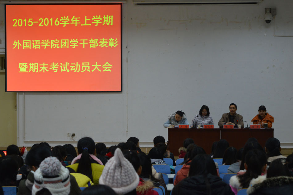 为严肃考风考纪,推动期末考试各项工作顺利开展,1月5日上午,公司2015-2016学年上学期团学干部表彰暨期末考试动员大会在人文楼报告厅举行。公司党委副书记陈铭,教务办主任余运伟,团总支书记任芳,专职辅导员吴倩、张鹏等老师与全体员工干部共同参加此次会议。大会由陈铭主持。