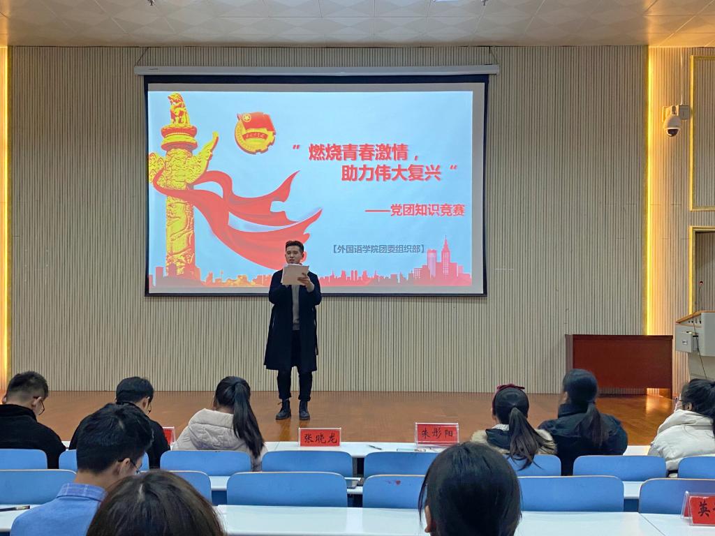 12月15日晚,77779193永利在人文楼报告厅举办“燃烧青春激情,助力伟大复兴”党团知识竞赛,2020级全体员工参加活动。