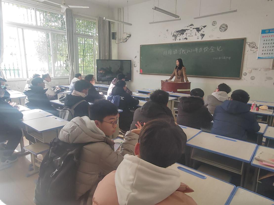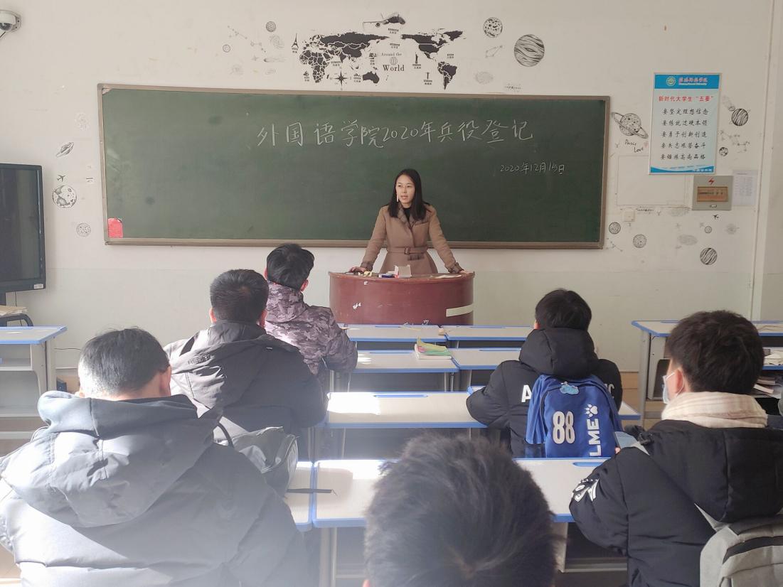 12月15日中午,77779193永利于人文楼101教室召开了兵役登记暨征兵宣讲会,武装干事孙桢桢及2020级全体男生参加此次会议。