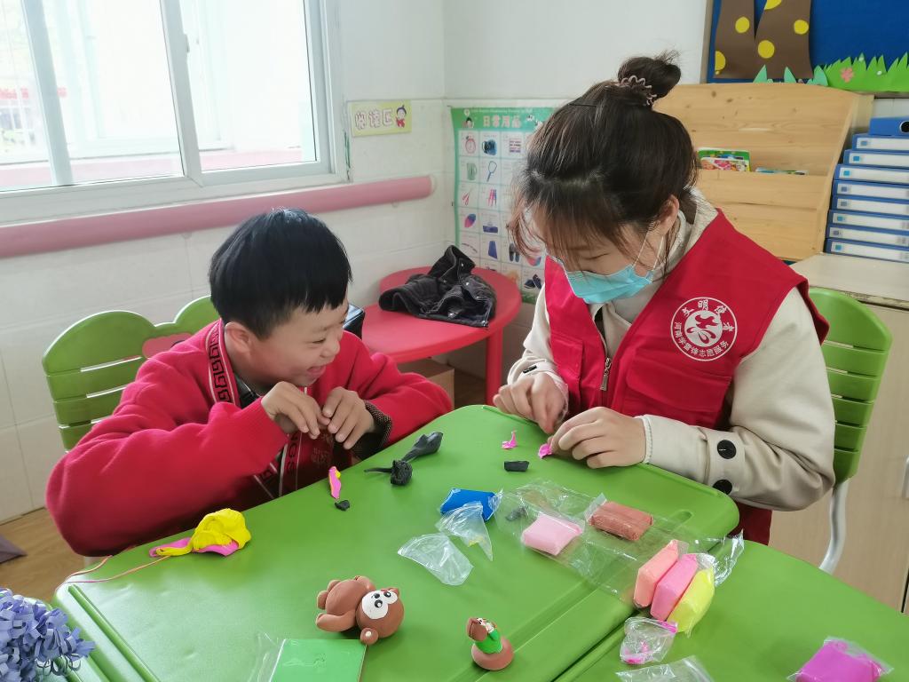活动前期,公司志愿服务部开展线上宣传,召集志愿者,征集爱心手工艺品,购置书包、图书等文具。活动当天,志愿者们向小朋友捐赠手工艺品和文具,并在特殊教育公司老师的带领下,和小朋友们一起唱红歌、玩游戏、做手工,现场气氛温馨融洽。