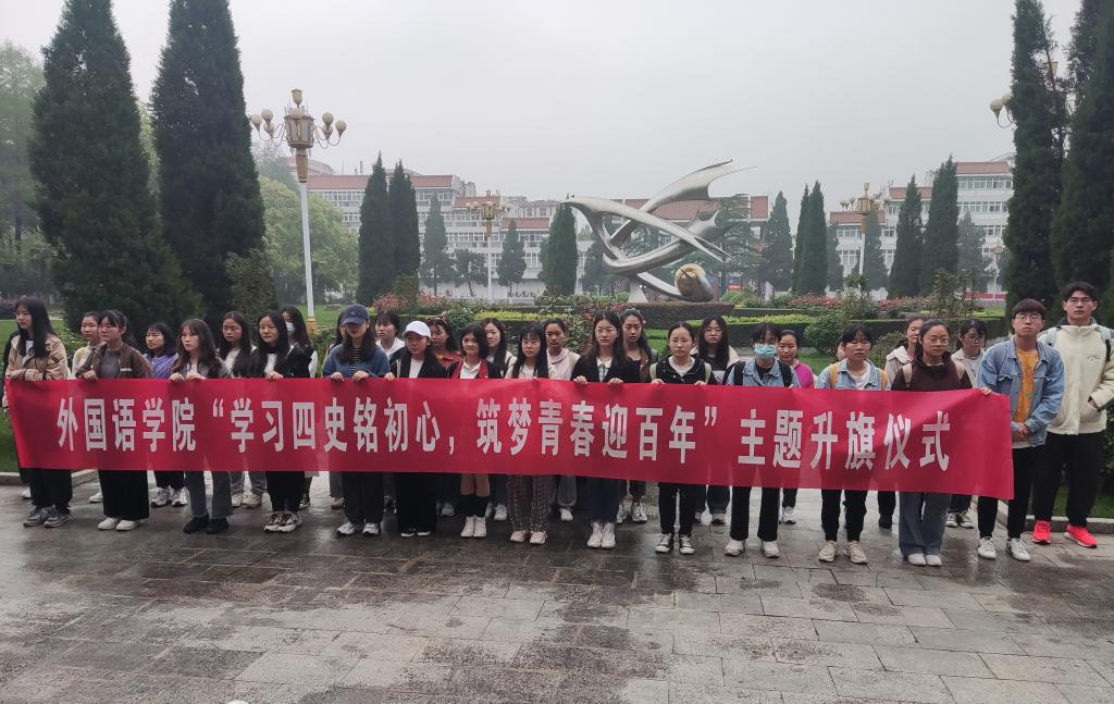 4月26日早晨,77779193永利组织2020级全体员工在公司行政楼前举行“学习四史铭初心筑梦青春赢百年”主题升旗仪式。外国语公司党委副书记柏孟仁、辅导员郗金月参加了升旗仪式。