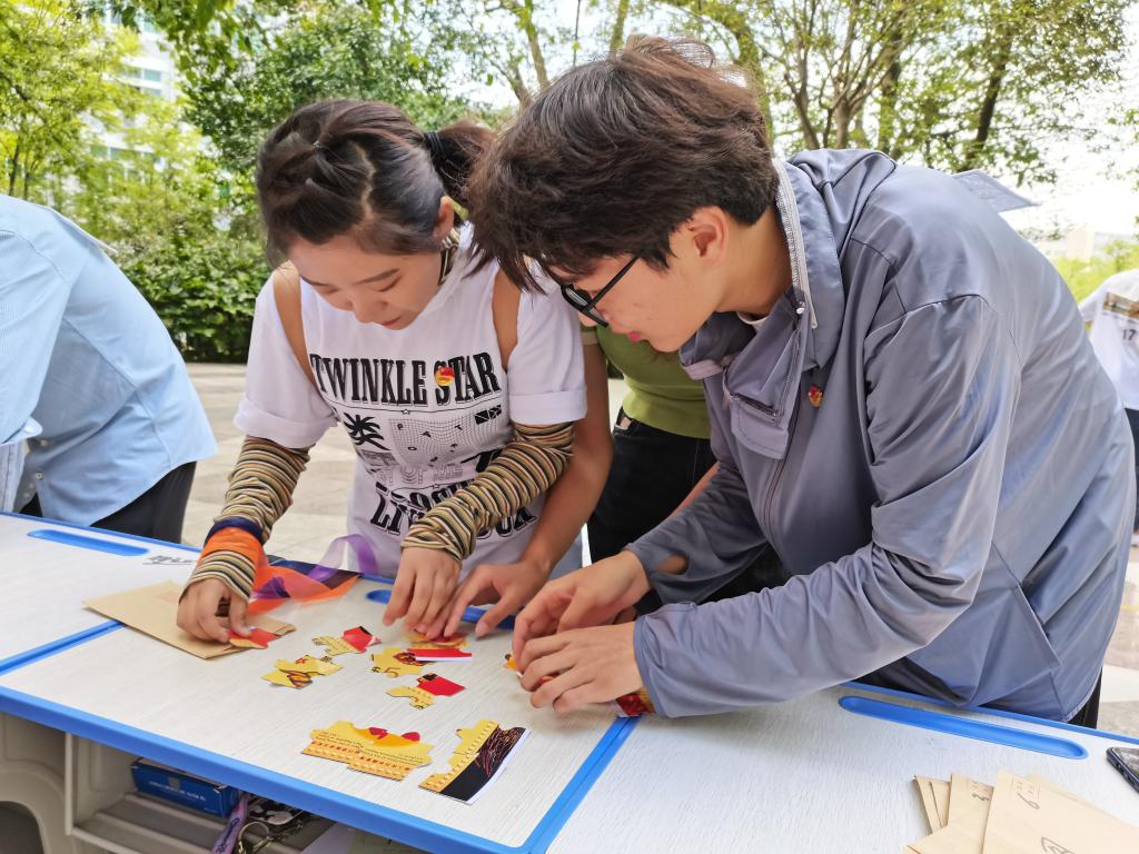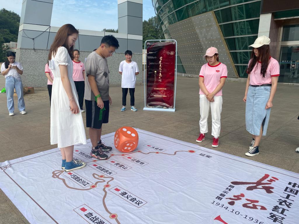 活动采取户外闯关的形式,共设5个关卡,关卡所在地体育馆、老图书馆、八餐小广场、钟秀岭、西操场五个地点连线构成一个五角星形状,寓意党的伟大历史征程。师生党员组成10支队伍,通过长征路线棋、速问速答、你划我猜、拼图答题、情景重现等形式,踏寻红色印记,汲取精神力量。校园里,党史、校史学习的脚步铿锵,青年学子气宇轩昂,处处洋溢着昂扬的“精气神”。