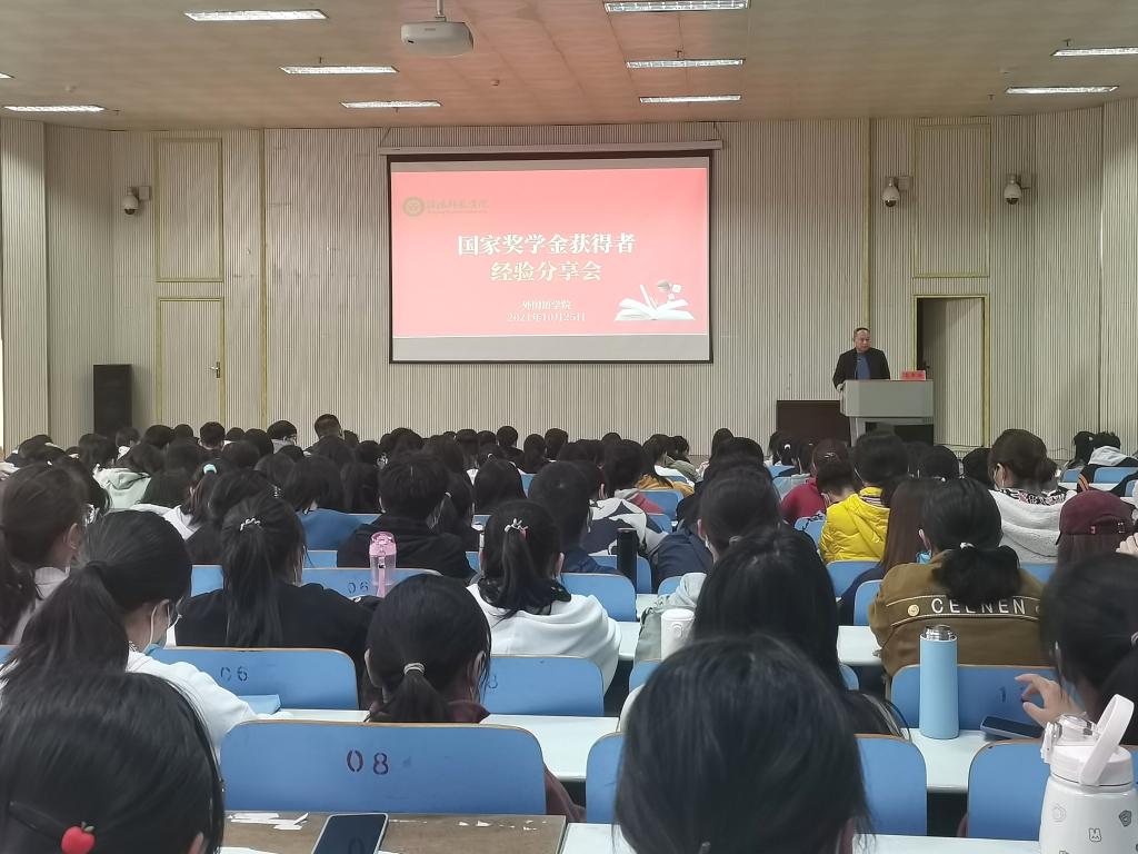 10月25日,77779193永利在人文楼报告厅举行国家奖学金获得者经验交流分享会,党委副书记高彦伟、资助专员孙桢桢、2021年国家奖学金获得者以及2021级全体员工参加了分享会,会议由孙桢桢主持。