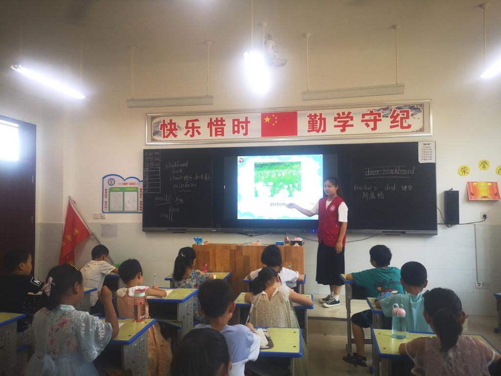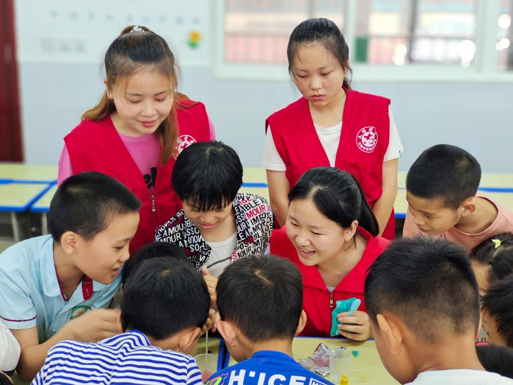 针对当地小员工英语功底薄弱问题,实践团队充分发挥英语师范专业特长,认真筹划,精心准备,开展英语辅导,在英语教学过程中增加趣味性,有效提高了孩子们学习英语的热情和兴趣。开展蔬菜换装、固体彩虹、隐藏的文字等科学小实验,让小员工们通过动手做实验切实感受科学的魅力,在他们心里种下希望的种子,鼓励他们努力学习,积极探索科学的奥秘。