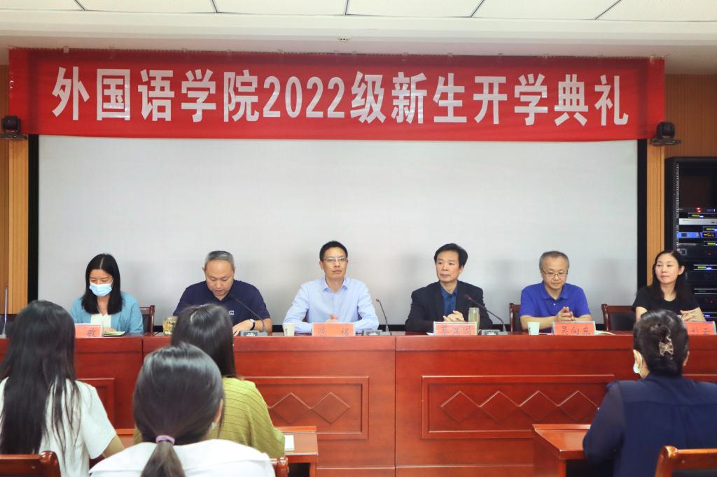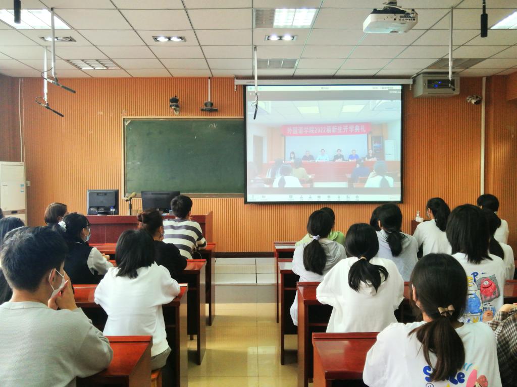 9月27日下午,2022级新生开学典礼在人文楼6-07会议室举行。受疫情影响,本次开学典礼采取线上线下相结合的方式进行。外国语公司党委书记陈铭,经理蔡满园,党委副书记高彦伟,副经理吴向东、郭敏、章彩云,英语系主任崔淑丽博士,教师代表吴恒博士,全体辅导员班主任、在校生代表以及2022级全体新生参加了典礼,典礼由高彦伟主持。