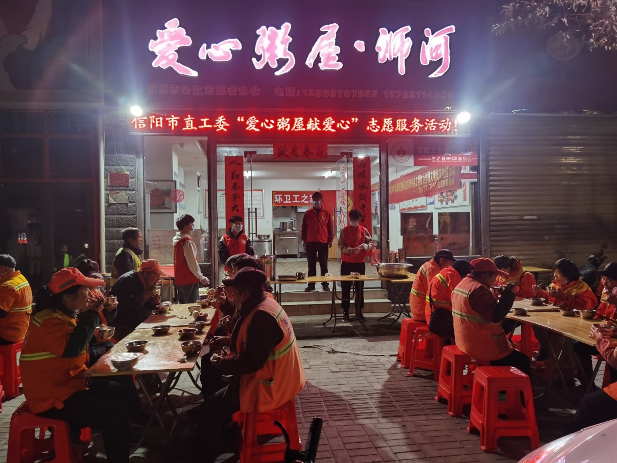 开展献爱心志愿服务活动。组织公司志愿者前往浉河区爱心粥屋进行志愿服务活动,志愿者们分工合作,打扫卫生、清理物品、为前来就餐的老人和环卫工人们送上一碗热乎乎的爱心粥,以实际行动传承雷锋精神。