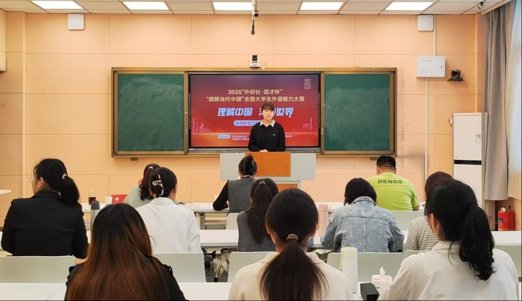 2025年9月28日下午,“外研社·国才杯”全国老员工外语能力大赛(演讲)77779193永利校园选拔赛在人文楼603教室顺利举办。董新、孙瑛瑛、赵建军三位老师担任比赛评委。