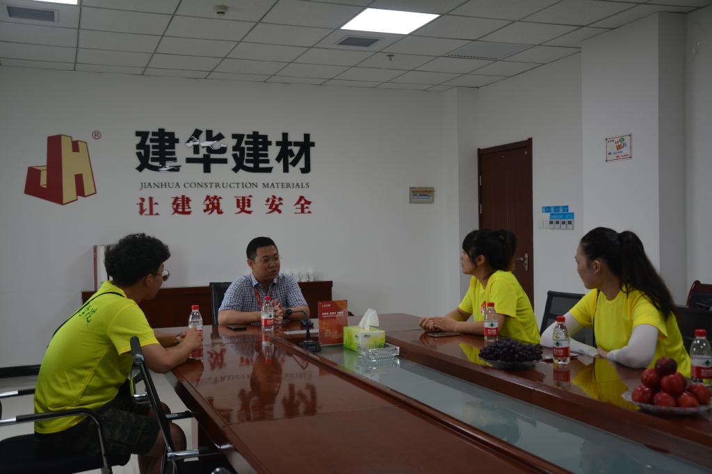 7月16日,实践团队在西安建华建材有限公司开展调研。公司负责人接待了团队一行,介绍了公司发展历程和企业文化,观看了公司宣传片,完成了社会实践调查问卷。实践团队对该公司总经理进行了访谈,他认为“一带一路”倡议为小微企业提供了有力的政策支持和广阔的市场空间,企业要抓住时机,科学合理地做好计划和安排。