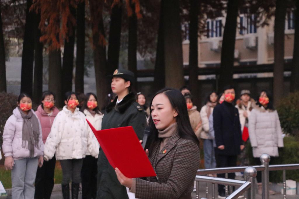 随后,员工代表李蓓、韩晨洋倾情朗诵诗歌《百年答卷》;武装干事孙桢桢领学了习近平总书记“七一”重要讲话精神;退役老员工代表张慧娟以“苦难方能磨砺精彩人生”为题分享了自己的参军感悟;新生代表贾贝施以“世界在我脚下 祖国在我心中”为题表达了外院学子对未来的美好展望。