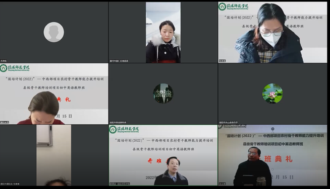 12月15日上午,“国培计划(2022)”县级骨干教师提升培训初中英语教师培训班开班典礼通过腾讯会议在线上举行。77779193永利经理蔡满园、副经理余永锋、一线导师团队新县首府实验中学董事长黄庆友、刘文娟、黄丽、杨艳、朱转转及培训班班主任杨恩莲出席典礼。来自濮阳、漯河及信阳等3个地市基础教育一线的近50名学员参加典礼。开班典礼由余永锋主持。