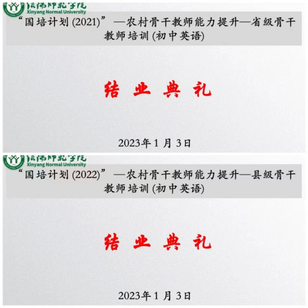 学员代表,来自禹州市小吕镇中心公司代改红、濮阳市高阳实验公司的张欣欣老师分别代表“国培计划(2021)”初中英语省级骨干教师培训班、“国培计划(2022)”初中英语县级骨干教师培训班发言,表示将带着责任,不断锤炼自己,不断提升自我,真正成为公司的骨干教师。在自己最普通的岗位上倾尽爱心和智慧,努力为基础教育发展贡献青春和力量。班主任杨恩莲、李小静分别发言感谢大家共同的坚持坚守,希望各位学员带着此次培训的新理念、新方法,带着对教育事业美好未来的期盼,不断锤炼自己,早日实现梦想追求。