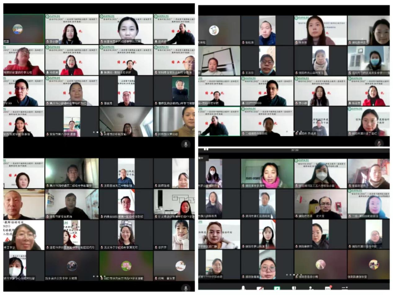 自2022年12月15日开班以来,按照河南省教育厅总体部署和公司工作要求,坚持“只改变培训模式,不改变培训目标”的原则,依托信息化网络平台工具,先后邀请华中科技大学徐锦芬教授、河南师范大学王彩琴等专家学者与多名一线教学名师开展线上培训,同时辅以同步答疑、自主学习、分组研讨、导师带教、课程展示等实践教学活动,确保了线上培训工作全面有效实施和培训活动的科学规范,圆满完成各项培训任务,得到了参训学员的一致认可与好评。