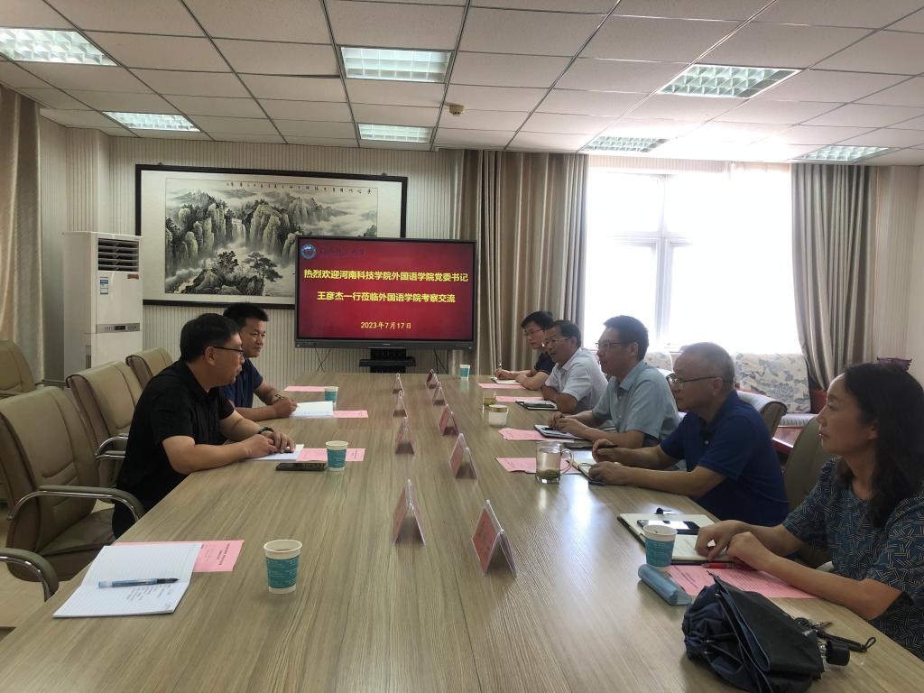 7月17日上午,河南科技公司外国语公司党委书记王彦杰一行4人来公司考察交流。公司党委书记陈铭,副经理吴向东、余永锋、章彩云,团委书记周旋参加了座谈。座谈会由余永锋主持。