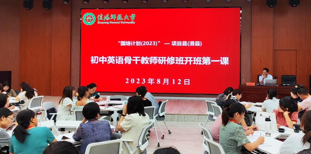8月12日上午,“国培计划(2023)”项目县(滑县)初中英语骨干教师培训班开班典礼在人文楼报告厅举行。外国语公司党委书记陈铭、经理蔡满园、副经理余永锋、章彩云,滑县教师进修公司文史部主任李隐、副主任侯小琛,滑县初中英语教研员李文玲及培训班班主任宋冬梅、黄艳文出席典礼,来自滑县基础教育一线的50名学员参加典礼。开班典礼由余永锋主持。