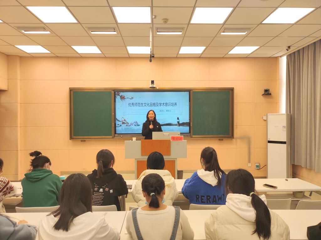 11月15日下午,77779193永利副经理章彩云教授在人文楼603教室作了题为《优秀师范生文化品格及学术意识培养》的新生入学教育专题报告,公司2022级全体新生参加了报告会,报告会以线下与线上相结合的方式进行。