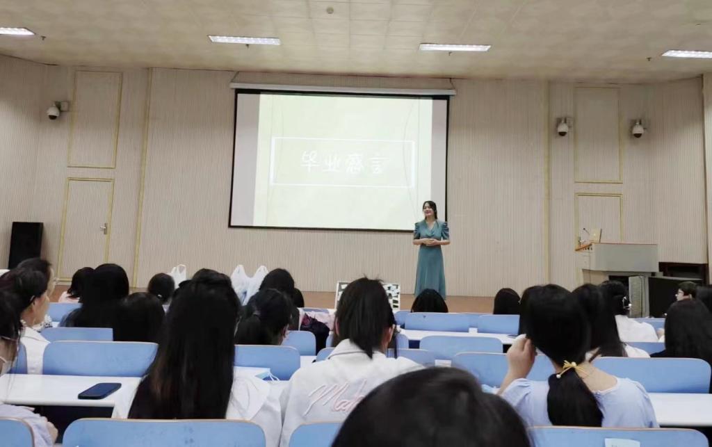 5月20日,公司在人文楼603召开毕业生主题班会,班主任孙桢桢为翻译专业两个班的56名毕业生精心准备了三样离别礼物,表达了班主任对毕业生的殷切希望和美好祝福。一是包含了对同学们过去四年“腹有诗书气自华”的肯定,对当下“芳林新叶催陈叶”的欣慰,对未来“千树万树梨花开”的期盼的手写信;二是从涵盖了大一到大四可能发生的102件小事的“翻译人”远航背包;三是包含后辈的离别祝福的“刮开有喜”刮刮卡祝福。