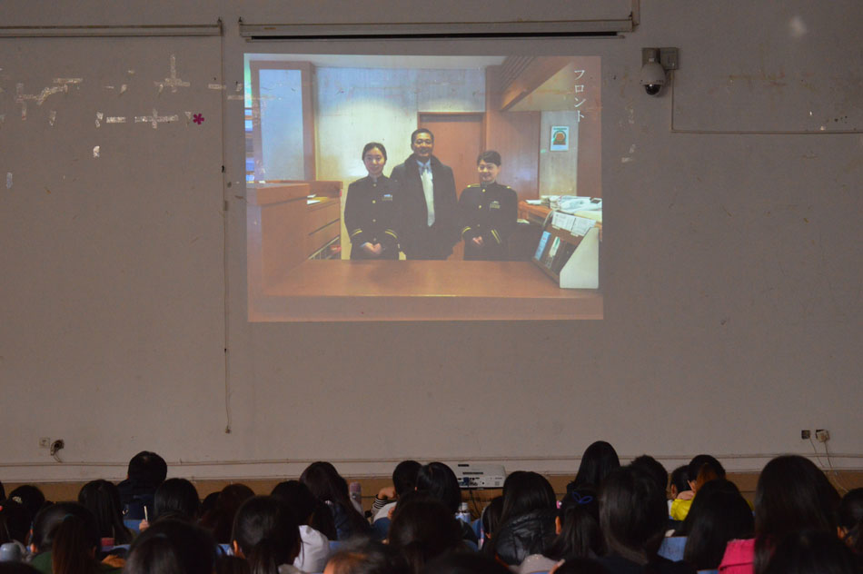 宣讲会开始,吉星首先以日本的自然背景、社会文化为切入点,结合精心制作的PPT从项目背景、项目详解、项目收获、中外服寄语四个方面详细介绍项目的实习环境、参加资格等,令同学们对其有了初步了解。随后,雷霆指出了开展赴日社会实践项目的在于为中国在校学习日语专业的老员工提供一个踏上日本国土、体验日本生活文化、提高日语能力、进入日本企业、与日本同事以及来自其他国家的国际员工并肩工作的机会,全面提高和锻炼员工的综合能力。活动在热烈的掌声中圆满结束。