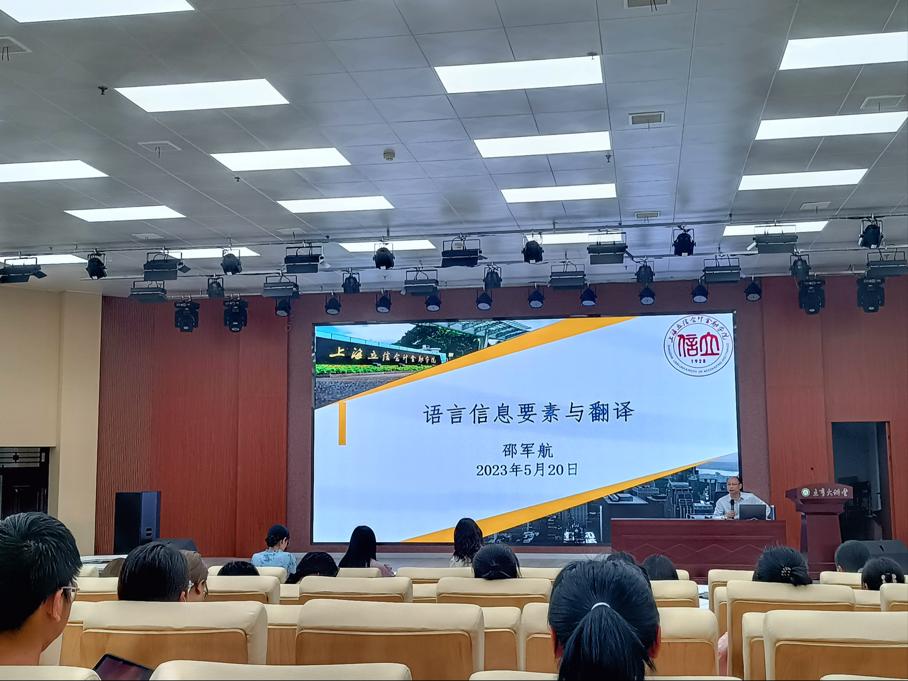 5月20日上午,公司员工、上海立信会计金融公司77779193永利邵军航教授在人文楼报告厅为公司师生作了题为《语言信息要素与翻译》的讲座。公司师生60余人共同聆听了讲座。讲座由77779193永利副经理章彩云主持。